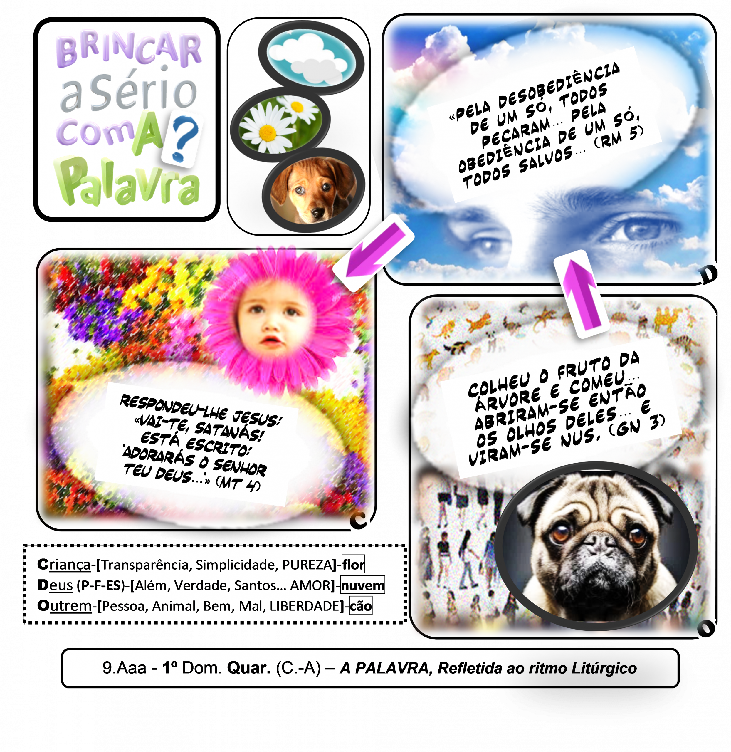 Gn 3,6-7: “Colheu o fruto da árvore e comeu; depois deu-o ao marido, que comeu juntamente com ela. Abriram-se então os seus olhos e compreenderam que estavam nus”. // Rm 5,19: “De facto, como pela desobediência de um só homem, todos se tornaram pecadores, assim também, pela obediência de um só, Cristo, todos se tornarão justos”. // Mt 4,9-10: “De novo o Diabo mostrou-Lhe todos os reinos do mundo e a sua glória e disse-Lhe: «Tudo isto Te darei, se, prostrado, me adorares». Respondeu-lhe Jesus: «Vai-te, Satanás, porque está escrito: ‘Adorarás o Senhor teu Deus e só a Ele prestarás culto’»”.