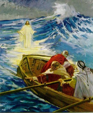 “O barco ia já no meio do mar, açoitado pelas ondas, pois o vento era contrário. De madrugada, Jesus foi ter com eles, caminhando sobre o mar. Os discípulos, vendo-O a caminhar sobre o mar, assustaram-se, pensando que fosse um fantasma. E gritaram cheios de medo. Mas logo Jesus lhes dirigiu a palavra, dizendo: «Tende confiança. Sou Eu. Não temais»”… (Mt 14,25-27 / 3ª L.).