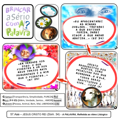 Ez 34, 12.15-16: “Eis o que diz o Senhor Deus: «Eu próprio irei em busca das minhas ovelhas e hei de encontrá-las… Eu apascentarei as minhas ovelhas, Eu as levarei a repousar, diz o Senhor Deus. Hei de procurar a que anda perdida… Tratarei a que estiver ferida, darei vigor à que andar enfraquecida e velarei pela gorda e vigorosa…”. // 1Cor 15,20.22.25-26: “Irmãos: Cristo ressuscitou dos mortos, como primícias dos que morreram… do mesmo modo que em Adão todos morreram, assim também, em Cristo, todos serão restituídos à vida… É necessário que Ele reine, até que tenha posto todos os inimigos debaixo dos seus pés. E o último inimigo a ser aniquilado é a morte”. // Mt 25,34.40: “…Então o Rei lhes dirá: «Vinde, benditos de meu Pai; recebei como herança o reino que vos está preparado desde a criação do mundo … Em verdade vos digo: O que fizestes a um dos meus irmãos mais pequeninos, a Mim o fizestes»…”.